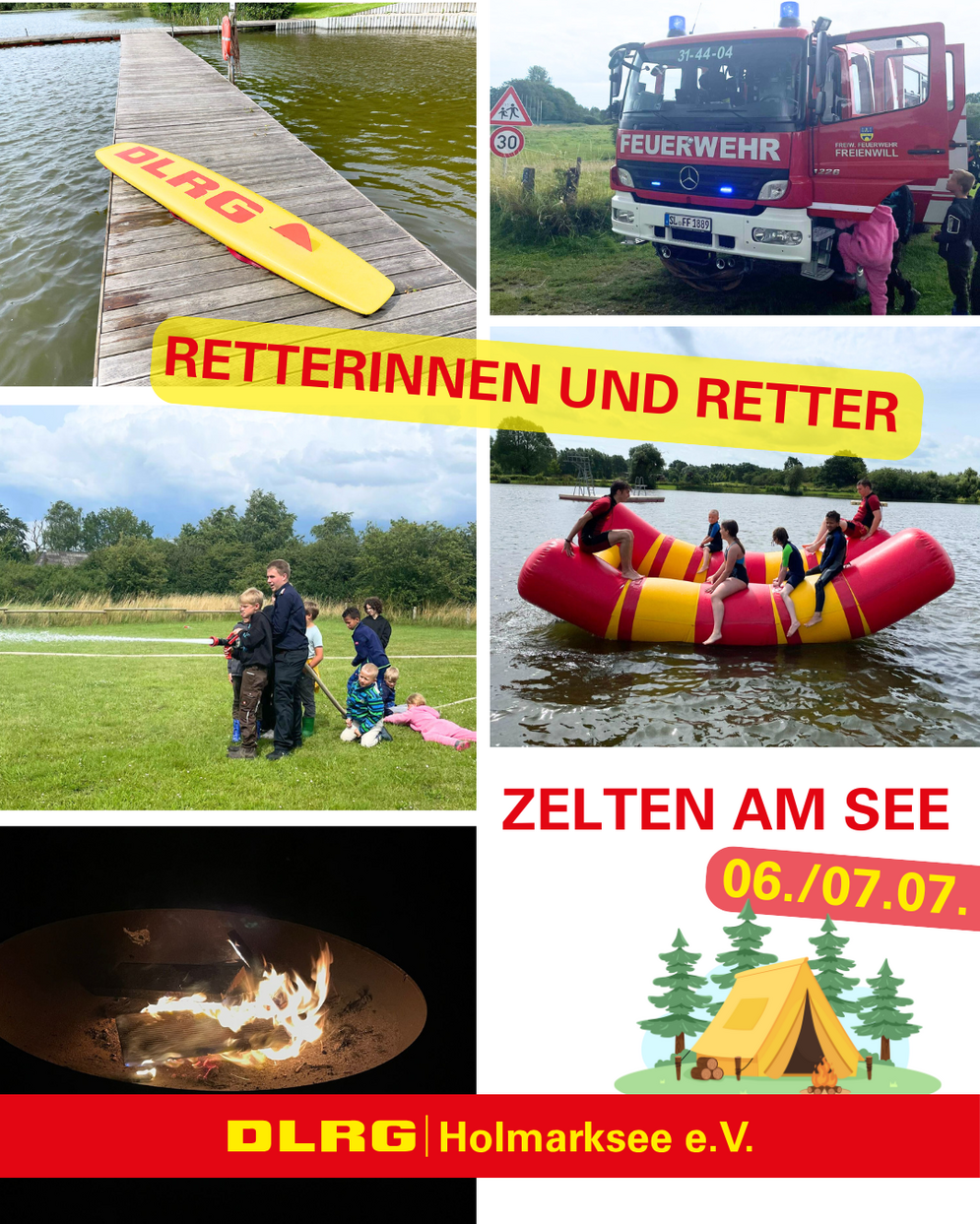 „Retterinnen & Retter“ durften die Kinder beim „Zelten am See“ am 6.-7. Juli sein. Insgesamt 30 Kinder probierten mit unseren Betreuern die Rettungsbretter aus, ließen sich durchs Wasser ziehen & auf dem Spineboard tragen. Auch die Reanimationspuppe wurde fleißig genutzt. Besonders beliebt bei den Älteren war die Wasser-Wippe.